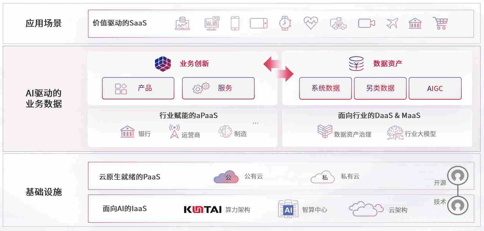 数字时代,,,,围绕企业数字化转型的关键要素,,J9.COM数码开创性的提出数云融合战略和技术体系框架,,,,着力在云原生、、、、数字原生、、、AI原生和信创产业上架构产品和服务能力,,,为处在不同数字化转型阶段的快消零售、、、、汽车、、金融、、医疗、、政企、、教育、、、、运营商等行业客户提供泛在的敏捷IT能力和融合的数据驱动能力,,构建跨界融合创新的数字业务场景和新业务模式,,,助力企业级客户建立面向未来的核心能力和竞争优势,,,全面推动社会的数字化、、智能化转型升级。。